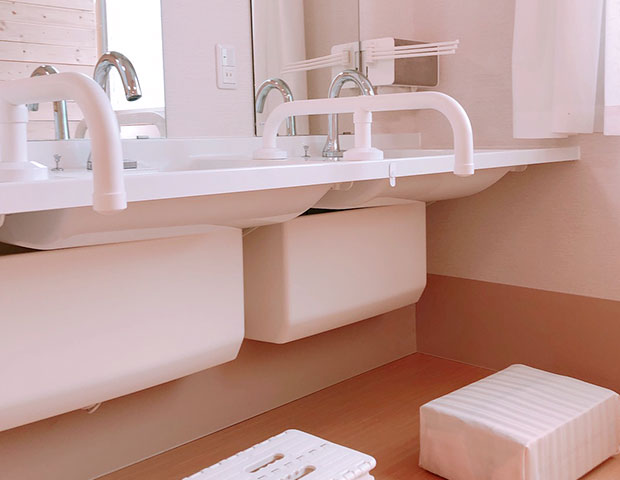 トイレや洗面台には手すりが付いており、安全面にも配慮しています。