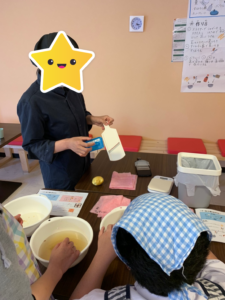 調味料の匂いに、「すごいいいにおい~」「おいしそう!」などと、感じたことや思ったことを言葉で伝えてくれました👍