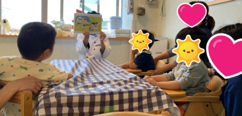 職員が牛乳ができるまでの様子を紙芝居で振り返り。