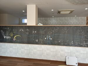 壁にある大きな黒板を使って宿題に取り組んだり、お絵描きを職員と一緒に楽しむ姿も見られます★★