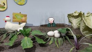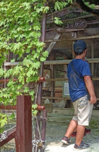 ニワトリ小屋に行くと、男の子ふたりがニワトリの鳴きまね練習を始めました🐓