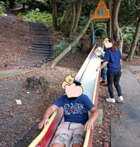 この遊具は難易度が高そうでしたが必死に足を進めていました😳
