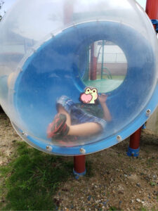 一方こちらでは、遊具の中で我が家のようにくつろいでいる子がいます🤣
